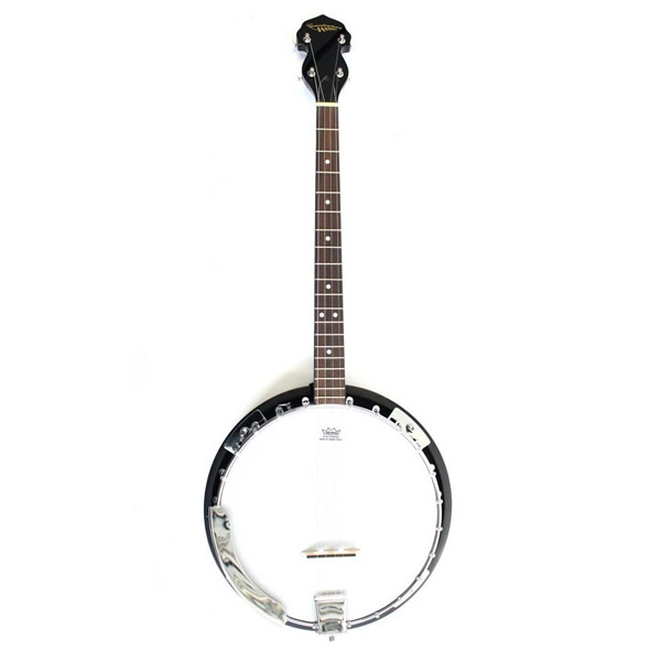 A beautifully sounding and great value 4 string Banjo, perfect for beginners or seasoned players. The attractive Banjo displays crisp tones with a versatile playing performance. The mahogany resonator and Remo head contribute to its sweet, well-defined tone. PRODUCT FEATURES -Mother of pearl effect sealed machine heads.