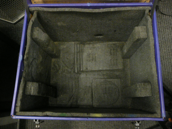Flight case with fibreboard shell. Can be used for drum hardware, lighting par cans, etc.