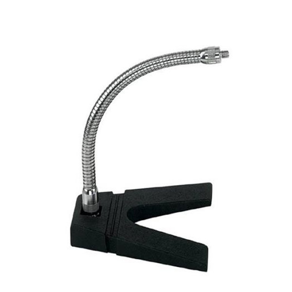 Flexible goose-neck desk-top microphone stand with a cast base.