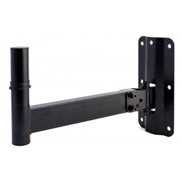 Wall mount heavy duty steel tube speaker stand. The directional mounting bracket allows both horizontal and vertical adjustment.