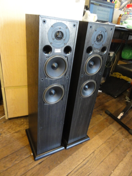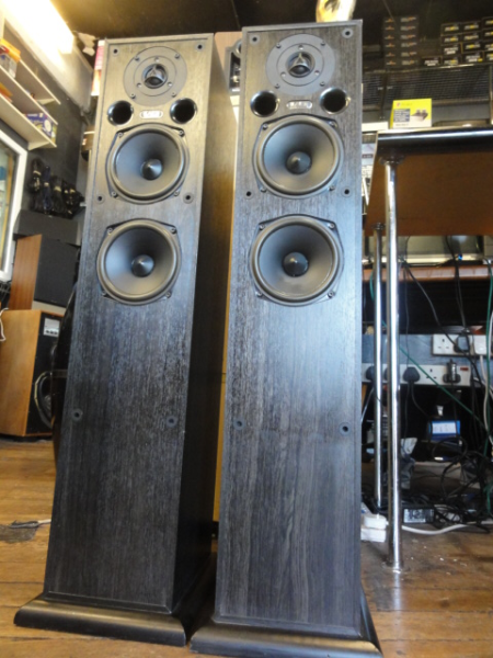 Compact floorstanders with a big sound. Excellent build quality- sturdy enclosures with a solid plinth. Twin woofers for extended bass response. The soft dome tweeter provides a silky smooth top end.