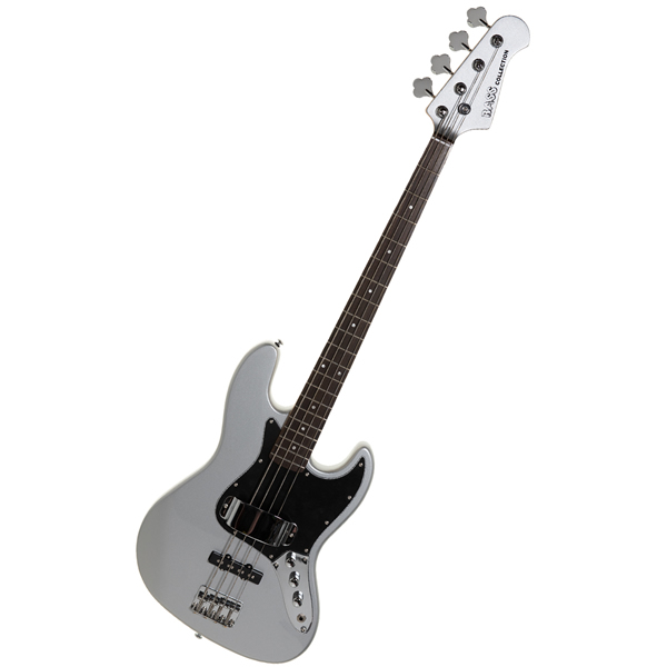 Amazing Korean-made Jazz Bass in Sterling Silver, with matching headstock, lovely slim neck profile, quality pickups, and more!