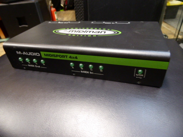 USB powered midi interface with 4 inputs and 4 outputs, offering 64 channels of midi I/O.