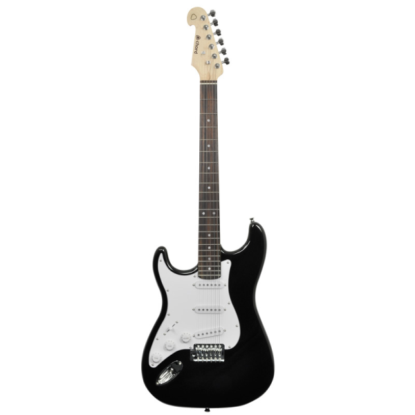 A traditionally styled standard electric guitar with 3 single coil pickups. The 22 fret maple neck with a choice of rosewood or maple fingerboard is bolted to the contoured alder body. The bridge has a vintage styled vibrato system and controls consist of 2 tones and a master volume with a 5-way lever selector. This is an affordable and versatile guitar.