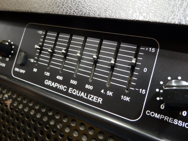 Battered 100 watt bass guitar amplifier.