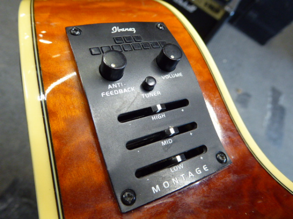 Montage guitars feature a 3-way switch that enables you to get both acoustic and electric guitar sounds. Both sounds have individual control.