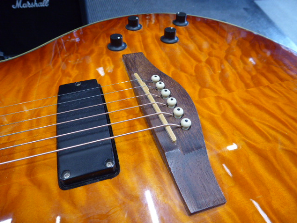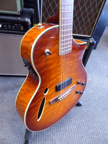 Very playable hybrid guitar with both acoustic and electric pickups.