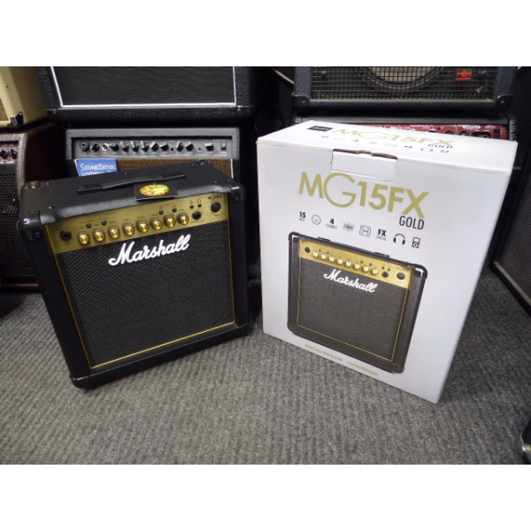 The Marshall MG15GFX Gold 15W is a portable practice amp that delivers real Marshall tone and good looks. With its iconic 'gold' front panel and script logo, the MG15GFX offers a small piece of Marshall heritage in a portable grab-and-go package. With 4 channels, 2 different kinds of overdrive and a master effects section, the MG15GFX is the ideal amp for the progressing guitarist or for musicians who require a quality practice combo.