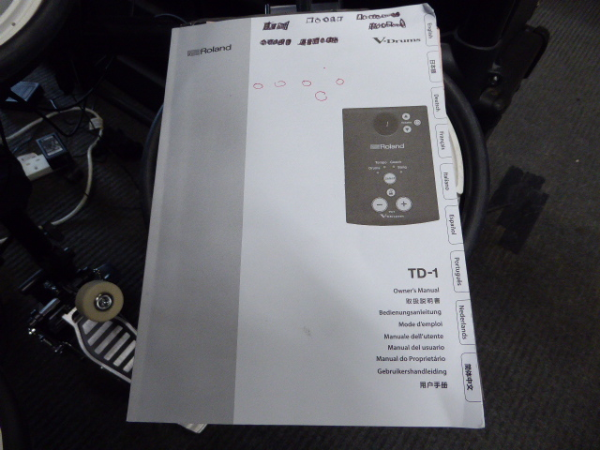 Excellent electronic drum kit with mesh heads, manual, kick pedal, and more.