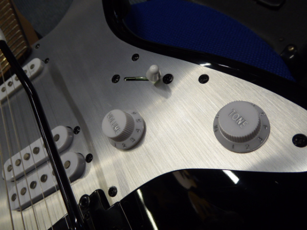 Awesome stratocaster with black hardware, alnico pickups, and matching headstock.