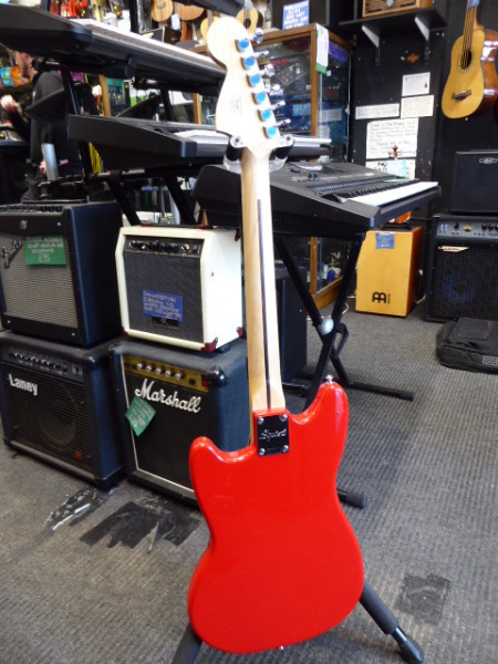 This Mustang has been sculpted for a luxurious playability and feel. The body has been topped with a gloss polyurethane, which ensures that your arm effortlessly glides across the body with each pluck and strum of the strings. Even during the sweatiest of performances, your transitions will be smooth. The neck features a sleek satin finish, ensuring your hand glides between each fret with ease.