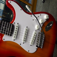 A traditionally styled standard electric guitar with 3 single coil pickups. The 22 fret maple neck with a choice of rosewood or maple fingerboard is bolted to the contoured alder body. The bridge has a vintage styled vibrato system and controls consist of 2 tones and a master volume with a 5-way lever selector. This is an affordable and versatile guitar.