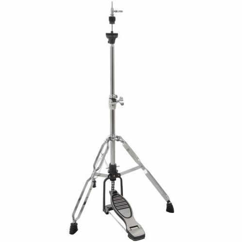 Heavy duty hi-hat stand with cast pedal and smooth chain drive mechanism. Adjustable spring tension and cymbal height.