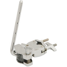 Drum stand multi clamp with adjustable ball joint and single mounting rod for attaching a drum, block, cowbell or other percussion accessory.