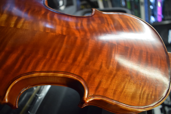 Very attractive, with a two-piece flame maple back.