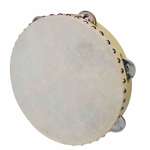 Tambourine, rawhide skin, wood, 10", 6 zils.