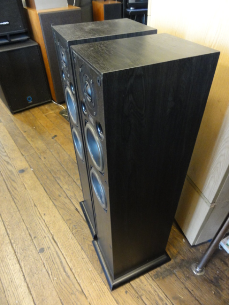 Compact floorstanders with a big sound. Excellent build quality- sturdy enclosures with a solid plinth. Twin woofers for extended bass response. The soft dome tweeter provides a silky smooth top end.