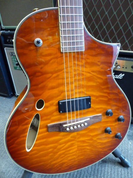Very playable hybrid guitar with both acoustic and electric pickups.