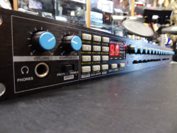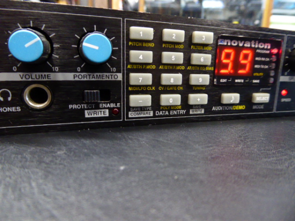 Monophonic analogue synthesizer rack designed to emulate the sound of the Roland TB-303.