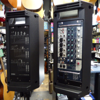 Portable, all-in-one 300-watt (150W + 150W) PA system featuring a detachable 8-channel powered mixer and two passive speakers.
