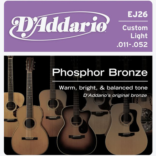 Phosphor Bronze was introduced to string making by D'Addario in 1974 and has become synonymous with warm, bright, and well balanced acoustic tone. D'Addario Phosphor Bronze strings are precision wound with corrosion resistant phosphor bronze onto a carefully drawn, hexagonally shaped, high carbon steel core. The result is long lasting, bright sounding tone with excellent intonation.